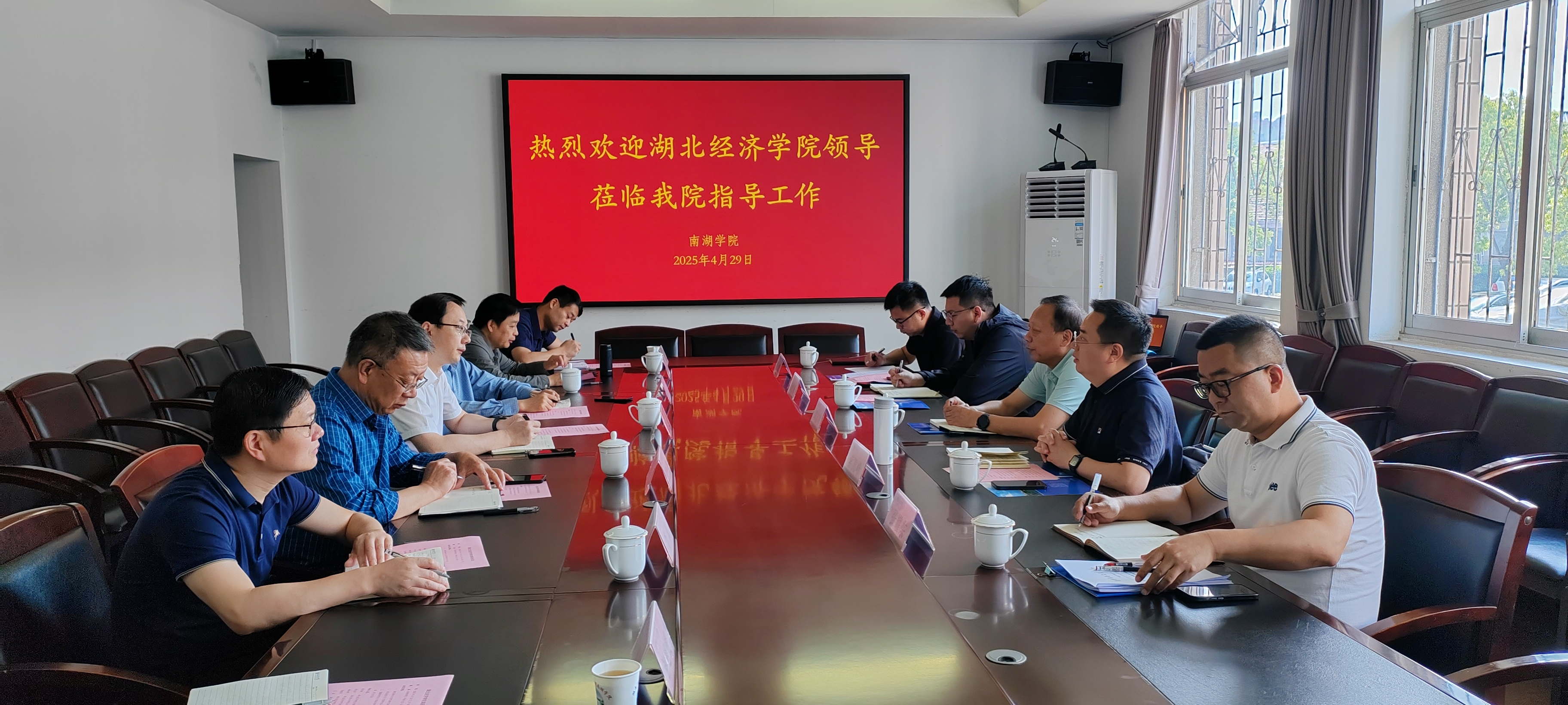 304am永利集团与湖北经济学院一行来访人员进行座谈交流。座谈会上,版权所有:中国·永利集团(304am-VIP认证)官网-Official Platform处长周金城代表304am永利集团对索凯峰一行来访表示热烈欢迎并介绍了304am永利集团发展与改革相关情况,南湖学院院长童耀南介绍了南湖学院基本情况。南湖学院副书记李宇虹、南湖学院转设办彭平峰和李斌等参加座谈会。双方就独立学院转设经验、学校“十五五”规划等问题进行了坦诚交流,为双方以后的工作拓宽了思路,明晰了方向。